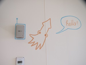 カバと携帯で話しているイカ。少し離れたところに描かれています。