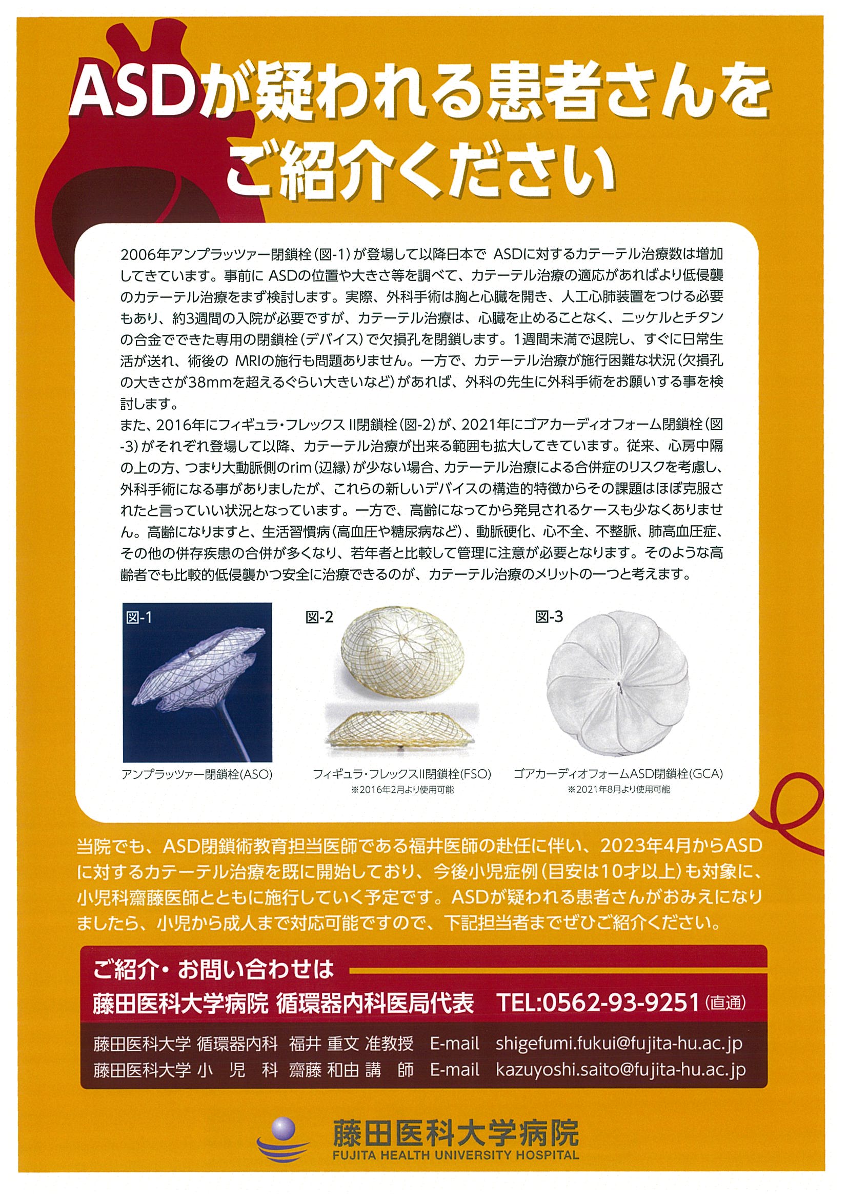 ◆ 近隣の小児科先生方へ心房中隔欠損症(ASD)症例のご紹介のお願い