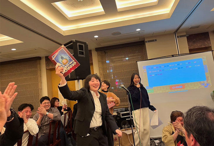 忘年会の日にも、ちゃんと発表してきた池田先生には神様がビンゴの1等賞を授けました。すごいね。
