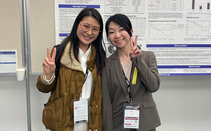 第21回 日本臨床腫瘍学会学術集会 (JSMO2024) 2024年2月22日(木)−24日(土)名古屋国際会議場で行われたJSMO2024に大矢講師と石井先生が参加されました。 中国の先生から質問を受けて早速一緒に撮影したらしい、communication能力高いなあ。 大矢講師の口演発表の様子 いつもすごいです ご苦労様です。
