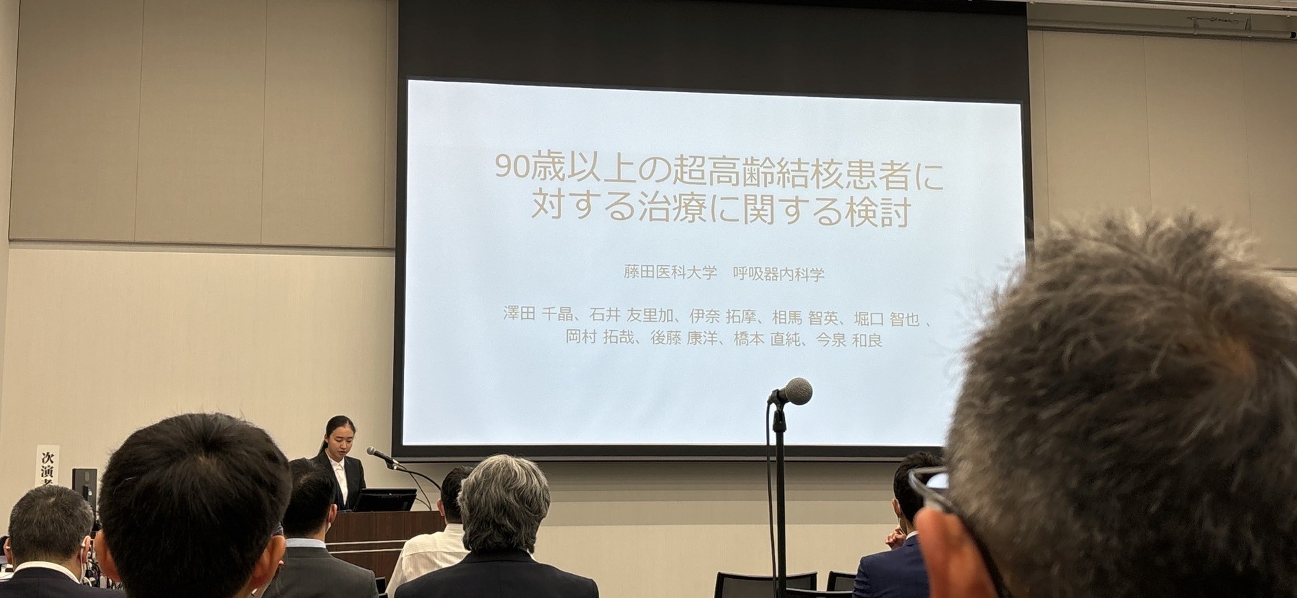 澤田先生にはガチンコの総会発表は今回初めてでしたが、余裕すぎるくらいの立派な発表でした。90歳以上の超高齢者結核 我が国ならではの大変な臨床的課題なのです。
