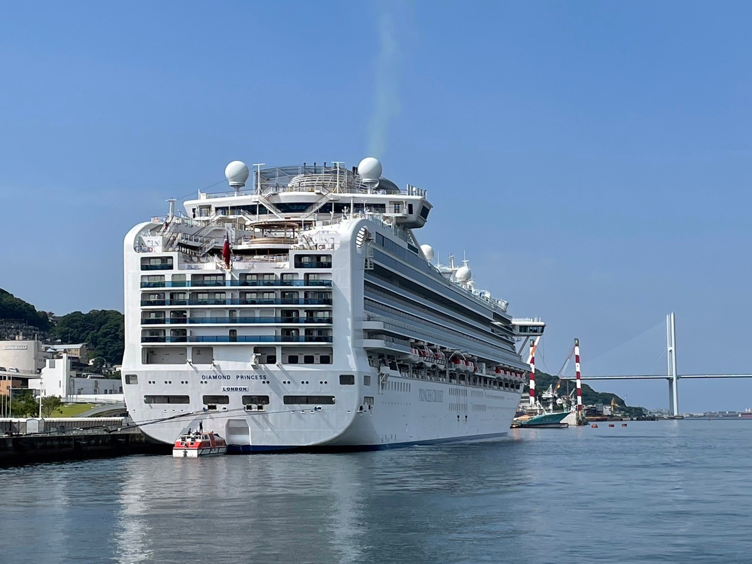 途中で私たちの運命を大きく変えたこの船にも出会したようです。縁を感じますなあ。Diamond Princess号 でか!