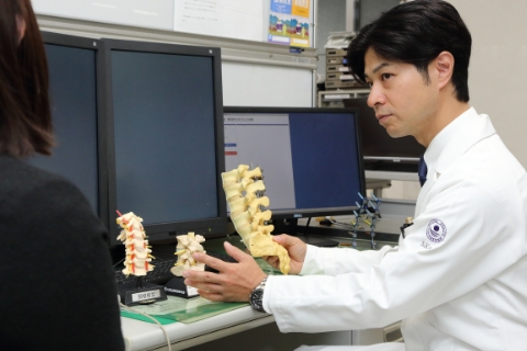 整形外科は前述のようにサブスペシャリティに分かれていることが一般的ですが、私自身は脊椎領域以外の治療にも多く携わってきました。その経験から特に下肢関節疾患との病状関連性について検討を行い、治療に反映してきました。例えば、脊椎と下肢関節の両方に疾患がある際にどちらの治療を先に進めるべきか、また時には手術によって得られるメリットだけでなく、制限が生じることなどを分析して優先度を決めています。