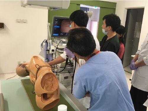 スチューデントドクターとして受け持ち症例を担当してもらっています。患者さんの問診から身体診察、診断の進め方や治療方針の検討、実際の検査への立会いなど、臨床診療チームの一員として消化器疾患に触れる機会を設けています。また、モデルを用いた内視鏡手技の体験などを積極的に行ってもらい少しでも消化器内科の診療に興味を持って取り組めるよう工夫しています。専門医からのクルズスを行い、国家試験に役立つことはもとより、最新の診断や治療のエビデンスにも触れる機会を設けています。