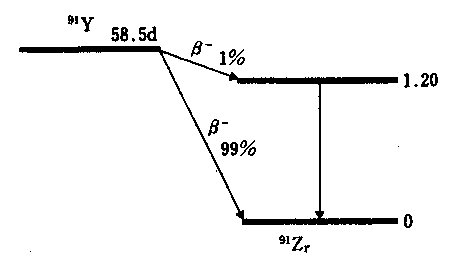 問題1. 安定同位元素が存在しないのはどれか。 a. Xe(キセノン) b. Tc(テクネシウム) c. Th(トリウム) d. U(ウラン) e. Pb(鉛) 1. a,b,c 2. a,b,e 3. a,d,e 4. b,c,d 5. c,d,e 問題 2. 壊変後に原子番号が大きくなるのはどれか。 1. α崩壊 2. β-崩壊 3. β+崩壊 4. 電子捕獲 5. 核異性体転移 問題 3. 核反応で正しいのはどれか。 a. 15N(p, n)15O b. 18O(p, n)18F c. 27Al(n, γ)28Ca(n, α)37Ar 1. a,b,c 2. a,b,e 3. a,d,e 4. b,c,d 5. c,d,e 問題 4. 91Y 50MBq が毎秒放出する光子数はいくつか。 ただし、壊変形式は図に示すとおりとする。 1. 5.0×10^7 2. 1.85×10^6 3. 5.0×10^5 4. 1.85×10^5 5. 2.0×10^4 問題 5. 壊変定数(λ)だけで求められるのはどれか。 a. 物理的半減期 b. 生物学的半減期 c. 有効半減期 d. 壊変原子数 e. 平均寿命 1. a,b 2. a,e 3. b,c 4. c,d 5. d,e 問題 6. 放射壊変について正しいのはどれか。 1. 放射平衡成立には親核種より娘核種の半減期が長いことが条件となる。 2. 放射壊変後の娘核種は安定同位体である。 3. ミルキングが可能となるには親核種または娘核種の一方が気体の必要がある。 4. ミルキング後、再び放射平衡に達する時間はどの核種も1時間以内である。 5. 永続平衡の平衡状態では親核種と娘核種との放射能は等しい。 問題 7. サイクロトロン生産核種はどれか。 a. 18F b. 51Cr c. 60Co d. 123I e. 201Tl 1. a,b,c 2. a,b,e 3. a,d,e 4. b,c,d 5. c,d,e 問題 8. 不要な放射性同位元素を沈殿させるのはどれか。 1. 同位体担体 2. 非同位体担体 3. 保持担体 4. スカベンジャ 5. 捕集剤 問題 9. 関連のある組合せはどれか。 a. イオン交換法 ――― 担体 b. 溶媒抽出法 ――― アンモニア c. ペーパークロマトグラフ法 ――― 展開液 d. ホットアトム法 ――― 反跳原子 e. ろ紙電気泳動法 ――― 電解液 1. a,b,c 2. a,b,e 3. a,d,e 4. b,c,d 5. c,d,e 問題 10. 誤っている組合せはどれか。 1. 吸収線量 ――― rem 2. 照射線量 ――― C・kg-1 3. 実行線量 ――― Sv 4. カーマ ――― Gy 5. 放射能 ――― Bq 放射線機器工学,最初に戻る 問題 11. 診断用エックス線装置について正しいのはどれか。 1. 空間電荷補償回路は管電流が変化しても管電圧が一定になるように補償する。 2. 防電撃ケーブルが短い場合にはエックス線管電圧波形が平滑化される。 3. mA計が振り切れる原因の一つにフィラメント加熱電圧の低下がある。 4. 高電圧整流用のシリコン整流器は整流管に比べて内部抵抗が小さい。 5. 三相6ピーク整流には3個の整流器が必要である。 問題 12. 1次電圧 200V で管電圧 125kV を発生する単相全波整流装置がある(無負荷時)。管電流 500mA 通電したときの1次電流は約何Aか。 1. 111 2. 221 3. 245 4. 313 5. 347 問題 13. 診断用エックス線高電圧装置について正しいのはどれか。 1. 自己整流装置は整流器を使用する。 2. インバータ式装置は交流を高周波に変換する回路を持つ。 3. 三相12ピーク整流装置の管電圧脈動率の理論値は13.4%である。 4. コンデンサ式装置のエックス線出力は管電流時間積に比例する。 5. 単相全波整流装置の管電圧調整は単巻変圧器の1次電圧を変化させる。 問題 14. 医用エックス線管装置で正しいのはどれか。 1. エックス線強度分布は陽極側より陰極側が高い。 2. 利用ビームは焦点から直接放射されるエックス線である。 3. ターゲット角度は実効焦点と基準軸とがなす角度である。 4. フィラメント特性はフィラメント電圧と管電圧との関係を示す。 5. ブルーミング値はエックス線の実焦点の特性を表す。 問題 15. 自動露出機構で正しいのはどれか。 1. エックス線検出部の照射野の形状はフィルム濃度に影響しない。 2. フォトタイマのエックス線制御は管電圧で行う。 3. 応答時間特性は主回路開閉器の応答に左右される。 4. 管電圧特性では管電圧が高いほどフィルム濃度に影響を与える。 5. フォトタイマはエックス線による電離電流を検出する。 問題 16. インバータ式エックス線装置で誤っているのはどれか。 1. エックス線制御回路のフィードバック応答は速い。 2. パワートランジスタはスイッチング素子に使用される。 3. 方形波インバータの管電圧制御は直流電圧可変回路で行う。 4. インバータ周波数を低くすることで高電圧変圧器を小型化できる。 5. 装置の定格出力は電源容量の影響を受ける。 問題 17. イメージインテンシファイアについて正しいのはどれか。 1. 入力面の蛍光体にはGd2O2Sが用いられる 2. 可変視野管は加速電極の電流を変化させて視野を制御する。 3. 出力輝度は視野が小さいほど明るい。 4. 変換係数は入射エックス線量に対する出力輝度の比で求められる。 5. 入力視野が大きいほど解像力は高くなる。 問題 18. エックス線 TV 装置に用いられる CCD カメラで正しいのはどれか。 1. 高消費電力である。 2. 撮像管に比べて空間分解能が低い。 3. 残像が多い。 4. 経年変化が大きい。 5. 地磁気の影響を受けない。 問題 19. エックス線 CT について誤っているのはどれか。 1. μtを組織の線減弱係数、μωを水の線減弱係数、Kを定数とするとき、CT値は K・μt /μωで表される。 2. 熱容量の大きいエックス線管を必要とする。 3. 検出器に