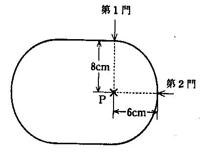 1. a 2. b 3. c 4. d 5. e 問題 54. 骨シンチグラフィについて正しいのはどれか。 a. 骨表面に化学的に吸着される放射性医薬品を用いる。 b. 転移性骨腫瘍を早期に診断することが出来る。 c. 放射性医薬品の投与から約3時間後に撮像する。 d. 骨盤部を撮像するときには排尿を我慢させる。 e. 骨折では集積が減少して陰性像を示す。 1. a,b,c 2. a,b,e 3. a,d,e 4. b,c,d 5. c,d,e 問題 55. 腫瘍マーカーはどれか。 a. TSH b. PTH c. SCC d. CEA e. AFP 1. a,b,c 2. a,b,e 3. a,d,e 4. b,c,d 5. c,d,e 放射線治療技術学,最初に戻る 問題 56. 高線量率小線源治療に用いられる核種はどれか。 a. 60Co b. 192Ir c. 198Au d. 222Rn e. 226Ra 1. a,b 2. a,e 3. b,c 4. c,d 5. d,e 問題 57. 耐容線量がもっとも低い器官はどれか。 1. 口腔粘膜 2. 甲状軟骨 3. 網膜 4. 中耳 5. 脊髄 問題 58. 放射線治療で小さい照射野が用いられるのはどれか。 a. ホジキン病 b. 咽頭癌 c. 下垂体腫瘍 d. 子宮癌 e. 精上皮腫 1. a,b 2. a,e 3. b,c 4. c,d 5. d,e 問題 59. 組織内照射について正しいのはどれか。 a. 外照射より全身的影響は少ない。 b. 均一な線量分布が得られる。 c. 適応疾患が多い。 d. 治療体積と照射体積との比が小さい。 e. 治療日数が短い。 1. a,b,c 2. a,b,e 3. a,d,e 4. b,c,d 5. c,d,e 問題 60. 回転照射が選択される疾患はどれか。 a. 上顎癌 b. 下垂体腺腫 c. 食道癌 d. 前立腺癌 e. 悪性リンパ腫 1. a,b,c 2. a,b,e 3. a,d,e 4. b,c,d 5. c,d,e 問題 61. 乳癌の原発巣治療に用いる照射法はどれか。 a. 組織内照射 b. 接線照射 c. 4門照射 d. 回転照射 e. 腔内照射 1. a,b 2. a,e 3. b,c 4. c,d 5. d,e 問題 62. 疾患とその照射法との組合せで正しいのはどれか。 1. 咽頭癌 ――― 前後対向2門照射 2. 上顎癌 ――― 組織内照射 3. 中咽頭癌 ――― 腔内照射 4. 甲状腺癌 ――― 回転照射 5. 聴神経腫瘍 ――― ラジオサージャリ 問題 63. 根治的放射線治療の適応となる疾患はどれか。 1. 平滑筋肉腫 2. 骨肉腫 3. 腎癌 4. 子宮頚癌 5. 胃癌 問題 64. TNM分類について正しいのはどれか。 1. 組織像による分類 2. 放射線感受性による分類 3. 細胞の分化度分類 4. 腫瘍の悪性度分類 5. 腫瘍の進行度分類 問題 65. 腔内照射と外部照射とを併用したときの線量分布計画において必要がないのはどれか。 1. 両者を行う際の臓器の位置の変化に注意する。 2. 両者の線質の違いに注意する。 3. 線量分布計算の原点の位置を明確にする。 4. 両者による吸収線量を等しくするようにする。 5. 両者の線量分布の重ね合わせは3次元的に行う。 問題 66. 放射線治療のQA(Quality Assurance)で誤っているのはどれか。 1. 小線源治療における線原位置の計算精度を保つ。 2. 超高圧エックス線照射ではアイソセンタの位置再現性を保つ。 3. 超高圧電子線照射では線源寸法を小さくするよう努力する。 4. 外部照射では出力線量の校正を定期的に行う。 5. リニアックのマグネトロン交換時にはエックス線エネルギー再現性を保つ。 問題 67. コンピュータを用いた線量分布計画で誤っているのはどれか。 1. 線量分布計算にはCT値を用いて不均質補正する。 2. 当線量曲線はCT画像に重ねあわせて表示する。 3. 計算アルゴリズムの特徴を把握したうえで計画する。 4. 線量分布の測定結果を正確に反映させる。 5. CT撮影は線量分布計画を立てた後に行う。 問題 68. 治療装置の照準器具でないのはどれか。 1. フロントポインタ 2. サイラトロン 3. サイドポインタ 4. バックポインタ 5. 光学距離計 問題 69. 治療用エックス線位置決め装置で正しいのはどれか。 a. 照射野は治療装置の照射野に一致する。 b. 任意の角度でエックス線撮影ができる。 c. エックス線焦点の寸法は治療装置と同じである。 d. 寝台は消化器撮影テーブルと同じ規格である。 e. 照射野はリニアックグラフィで再確認する。 1. a,b,c 2. a,b,e 3. a,d,e 4. b,c,d 5. c,d,e 問題 70. テレコバルト治療装置について正しいのはどれか。 1. 線源の形状はコイン形が主流である。 2. 線源の大きさは直径5cmである。 3. 60Coはβ線とγ線との放出核種である。 4. γ線エネルギーは1.25MeVで単一である。 5. 線量率は不安定であり補正が困難である。 問題 71. 深さに依存しないのはどれか。 1. Cλ 2. CE 3. TPR 4. TAR 5. PDD 問題 72. PDDの測定に不向きなのはどれか。 1. 水ファントム 2. テフロン 3. Mix DP 4. ポリスチレン 5. アクリル 問題 73. 電子線治療に関係のないのはどれか。 1. スキャタリングフォイル 2. 照射筒 3. 側視鏡 4. 原体照射 5. 術中照射 問題 74. 下図のように断面がトラック状で密度1.0のファントム中の点Pに吸収線量2Gyを照射したい。第1門は上方より、第2門は側面より照射野4cm×4cmで照射するとき第1門でリニアックにセットすべき線量はいくらか。 ただし、4MVリニアックを用いるものとし、この照射野におけるTPRを深さ8cmと6cmではそれぞれ0.73と0.80とする。