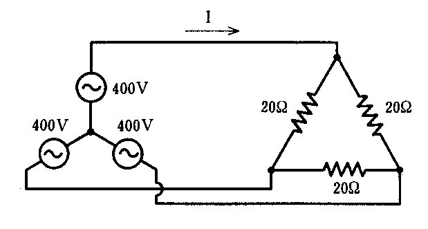 1. 1 2. 2 3. 3 4. 4 5. 5 問題 31. 平均値が10Aの正弦波交流の最大値は何Aか。 1. 11.1 2. 11.6 3. 14.1 4. 15.7 5. 17.3 問題 32. インダクタンスLに\sqrt{2}I sin(ωt+θ)の電流が流れているとき、両端の電圧はどれか。ただし、ωは角周波数、tは時間である。 1. \sqrt{2} IL sin(ωt+θ+π/2) 2. \sqrt{2} IL sin(ωt+θ−π/2) 3. \sqrt{2} IωL sin(ωt+θ−π/2) 4. \sqrt{2} IωL sin(ωt+θ+π/2) 5. \sqrt{2} I/(ωL) sin(ωt+θ−π/2) 問題 33. 負荷の両端に\sqrt{2} V sin ωt の電圧を加えたとき、流れる電流は \sqrt{2} I sin(ωt−φ)であった。電力を表す式はどれか。ただし、ωは角周波数、tは時間である。 1. IV sinφ 2. IV cosφ 3. 2IV 4. 2IV sinφ 5. 2IV cosφ 問題 34. 図の平衡三相回路の線電流Iは何Aか。
