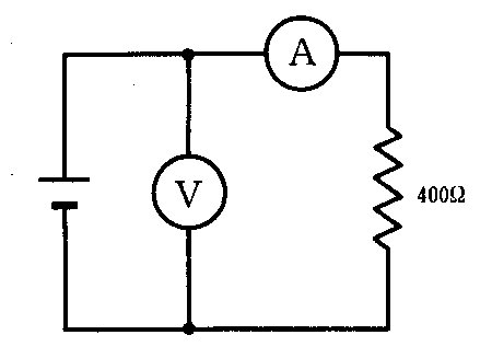 問題 37. 図の回路では電圧計21V 、電流計は50mAを示した。電流計の内部抵抗は何Ωか。