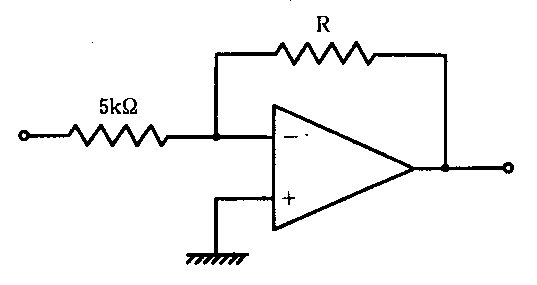 問題 40. FETについて誤っているのはどれか。 a. MOS形では入力抵抗が高い。 b. C‐MOS回路では消費電力を小さくできる。 c. MOS形にはエンハンスメント形とデプレッション形とがある。 d. ゲート、アノード及びカソードの電極をもつ。 e. 正孔と電子との2種類のキャリアによって動作する。 1. a,b 2. a,e 3. b,c 4. c,d 5. d,e 問題 41. 図の回路の電圧利得が20dBのとき、抵抗Rは何kΩか。