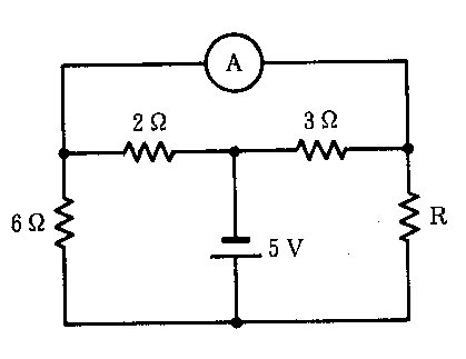 問題 26. 図の回路でC_{1}の端子電圧がAB間電圧の1/5であった。C_{1}を表す式で正しいのはどれか。[図] 1. 4C2 + 4C3 2. C2/5 + C3/5 3. 5/(C2 + C3) 4. 1/(5C2 + 5C3) 5. 6C2 + 6C3 問題 27. 導体の銅線の太さを3倍、長さを3倍にしたとき、電気抵抗は何倍になるか。 1. 0.33 2. 1.0 3. 1.33 4. 3.0 5. 9.0 問題 28. 4mHの自己インダクタンスに電流を流して0.2Jの電磁エネルギーを蓄えるには何Aの電流を流せばよいか。 1. 7.1 2. 10 3. 50 4. 100 5. 200 問題 29. 単位で誤っているのはどれか。 1. 電界の強さ : V/m 2. 誘電率 : F/m 3. 抵抗率 : Ω/m 4. 透磁率 : H/m 5. 磁界の強さ : A/m 問題 30. 図の回路において電流計の指示が0となる抵抗Rの値は何Ωか。[図]1. 2 2. 3 3. 4 4. 6 5. 9 問題 31. 図の回路に流れる電流Iは何Aか。[図]