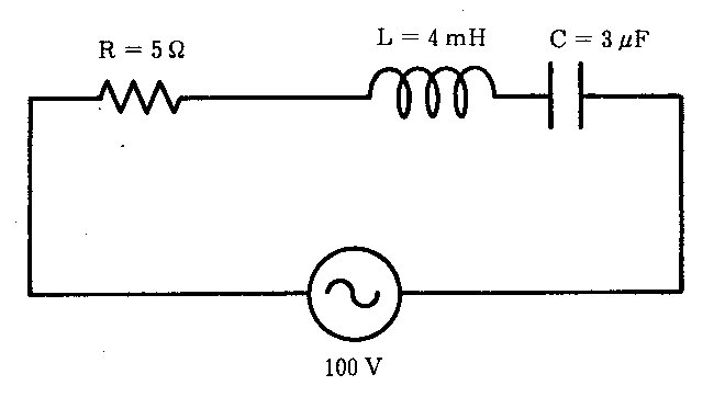 1. 0.1 2. 0.14 3. 7.1 4. 10 5. 12.5 問題 34. 図の回路に流れる電流は20Aであった。これらのR、L、Cを並列に同じ電源に接続したとき、電源より流出する電流は何Aか。[図]