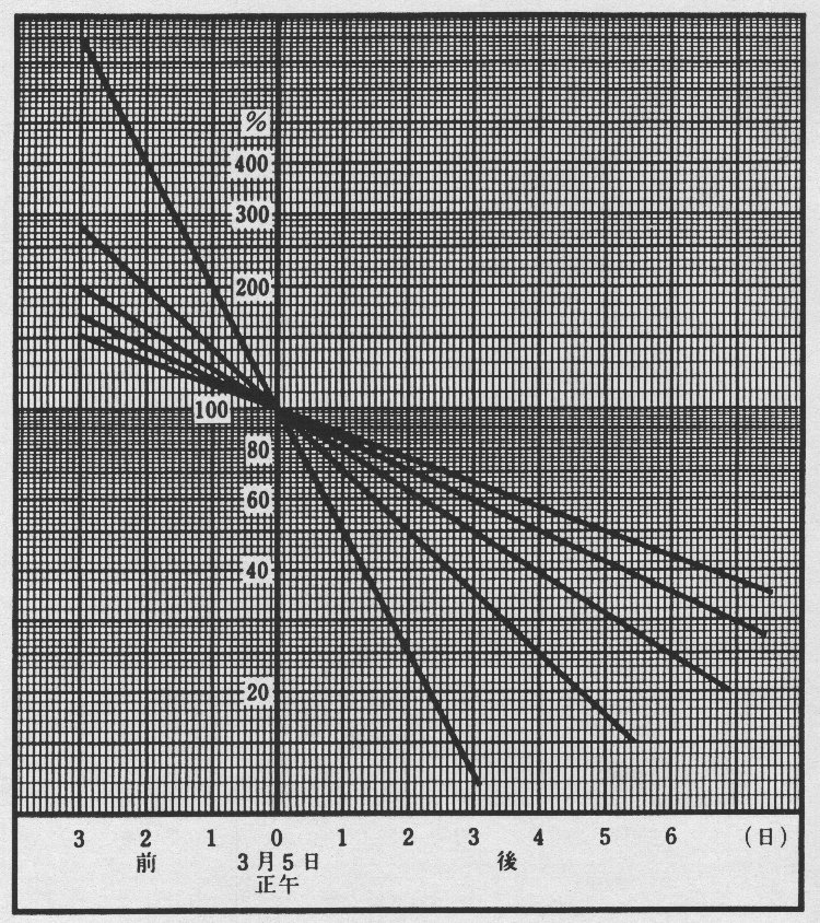1. I 2. II 3. III 4. IV 5. V 問題 77 高エネルギーX線の吸収線量の測定で誤っているのはどれか。 1. 大気の温度補正が必要である。 2. コバルト校正定数が必要である。 3. ファントムの温度を考慮する。 4. 照射野より大きいファントムを用いる。 5. 電子フルエンス計数を考慮する。 問題 78 シャロー形電離箱で誤っているのはどれか。 1. ステム効果がある。 2. 平行平板形電離箱である。 3. 実効中心は空洞の中心である。 4. イオン再結合補正が必要である。 5. リファレンス線量計として用いる。 問題 79 電離箱線量計による電子線の吸収線量測定で誤っているのはどれか。 a. コバルト校正定数が必要である。 b. 吸収線量変換係数は深さに依存する。 c. 電離量半価深から平均入射エネルギーが求められる。 d. 指頭形は極性効果を考慮する必要がある。 e. 校正深は平均入射エネルギーが5MeVと10MeVとでは同じである。 1. a,b 2. a,e 3. b,c 4. c,d 5. d,e 問題 80 中性子線の測定に用いるシンチレータはどれか。 1. NaI(Tl) 2. CsI(Tl) 3. BGO 4. LiI(Eu) 5. ZnS(Ag) 問題 81 液体シンチレーションカウンタに関係ないのはどれか。 1. フェーディング 2. 同時計数回路 3. 光電子増倍管 4. クエンチング 5. 外部標準線原法 問題 82 ウエル形NaI(Tl)シンチレーションカウンタで誤っているのはどれか。 1. γ線の測定に用いる。 2. NaI(Tl)は潮解性がある。 3. 幾何学的検出効率が大きい。 4. 液体窒素で冷却する必要がある。 5. 試料容積が異なれば検出効率も異なる。 問題 83 ダイノードが10段、2次電子放出能4の光電子増倍管で増幅される倍率に最も近いのはどれか。 1. 10 2. 103 3. 104 4. 106 5. 108 問題 84 ポアソン分布で誤っているのはどれか。 1. 平均と分散とは等しい。 2. 平均が大きくなると左右非対称になる。 3. 確率変数の差はポアソン分布になる。 4. 確率変数は離散的な値のみとる。 5. 放射性同位元素の壊変はポアソン分布に従う。 問題 85 GM計数装置で、試料の係数値が10分間で35,000カウント、バックグラウンドが10分間で5,000カウントであった。正味の計数率は何cpmか。 1. 3,000±17.3 2. 3,000±20.0 3. 3,000±40.0 4. 3,000±54.8 5. 3,000±63.2 放射線管理学、最初に戻る 問題 86 診療放射線技師法で正しいのはどれか。 a. 医師の指示の下に放射性同位元素を人体内に刺入できる。 b. 散瞳薬を投与した者の眼底を撮影することができる。 c. 業務上知り得た患者情報についての守秘義務がある。 d. 照射録には照射方法を具体的かつ詳細に記載する必要がある。 e. 病院又は診療所以外の場所で百万電子ボルト以上のエネルギーをもつX線を照射できない。 1. a,b,c 2. a,b,e 3. a,d,e 4. b,c,d 5. c,d,e 問題 87 診療用高エネルギー放射線発生装置を備えるとき、届け出る必要がないのはどれか。 1. 病院又は診療所の名称及び所在地 2. 装置の制作者名 3. 設地工事開始時期 4. 放射線障害の防止に関する構造設備 5. 装置の型式及び台数 問題 88 放射線障害防止法で第4群に規定されている核種はどれか。 a. 14C b. 51Cr c. 59Fe d. 125I e. 201Tl 1. a,b,c 2. a,b,e 3. a,d,e 4. b,c,d 5. c,d,e 問題 89 放射線診療従事者の線量制限体系に対する考え方の順序で正しいのはどれか。 1. 防護の最適化→個人の線量限度→行為の正当化 2. 個人の線量限度→行為の正当化→防護の最適化 3. 行為の正当化→防護の最適化→個人の線量限度 4. 防護の最適化→行為の正当化→個人の線量限度 5. 行為の正当化→個人の線量限度→防護の最適化 問題 90 99mTcに対する鉛の半価層を1.4mmとした場合、線量を1/28にするための鉛厚は何mmか。 1. 2.8 2. 5.6 3. 8.4 4. 11.2 5. 14.0 問題 91 γ線源の取り扱いで正しいのはどれか。 a. 作業時間を短縮する。 b. 線源との距離をとる。 c. 管理区域から搬出できる表面密度限度は4Bq/cm2である。 d. 原子番号の低い物質で遮へいする。 e. 線源の近くで遮へいする。 1. a,b,c 2. a,b,e 3. a,d,e 4. b,c,d 5. c,d,e 問題 92 フィルムバッジで誤っているのはどれか。 1. γ線を測ることができる。 2. 線量・黒化度曲線を利用している。 3. 線質を求めることができる。 4. 測定できる線量の下限は1μSvである。 5. 着用していないときはバックグラウンドの低い場所に保管する。 問題 93 誤っている組合わせはどれか。 1. フィルムバッジ --- 個人の月間被爆線量測定 2. ポケット線量計 --- 緊急作業時の個人被曝線量測定 3. 電離箱サーベイメータ --- 居住区域の境界での空間線量率測定 4. ヒューマンカウンタ --- 体内被曝線量の測定 5. キュリーメータ --- 床の表面汚染密度の測定 問題 94 非密封放射性同位元素の除染作業で正しいのはどれか。 a. 高レベルから低レベルの順に行う。 b. 汚染区域の外側から中心へ向けて行う。 c. 短半減期の場合は減衰法を用いる。 d. 汚染区域に人が立ち入らないための措置を行う。 e. 汚染箇所をドライヤーで乾燥させる。 > 1. a,b,c 2. a,b,e 3. a,d,e 4. b,c,d 5. c,d,e 問題 95 放射線障害防止法における放射線業務従事者の健康診断で正しいのはどれか。 a. 初めて管理区域に立ち入る前に行う。 b. 放射性同位元素を誤って吸入したときは遅滞なく行う。 c. 放射性