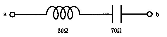 a. 2 b. 4 c. 5 d. 10 e. 15 1. a,b,c 2. a,b,e 3. a,d,e 4. b,c,d 5. c,d,e 問題 31 インピーダンス負荷に100Vの正弦波交流電圧を加えたとき、流れた電流の大きさが5A、位相遅れがπ/3 radであった。この負荷の複素インピーダンス〔Ω〕はどれか。 1. 10-10\sqrt{3}j 2. 10+10\sqrt{3}j 3. 16+12j 4. 20+20\sqrt{2}j 5. 20-20\sqrt{2}j 問題 32 ab間に100Vの交流電圧を加えたとき、電流は何Aか。